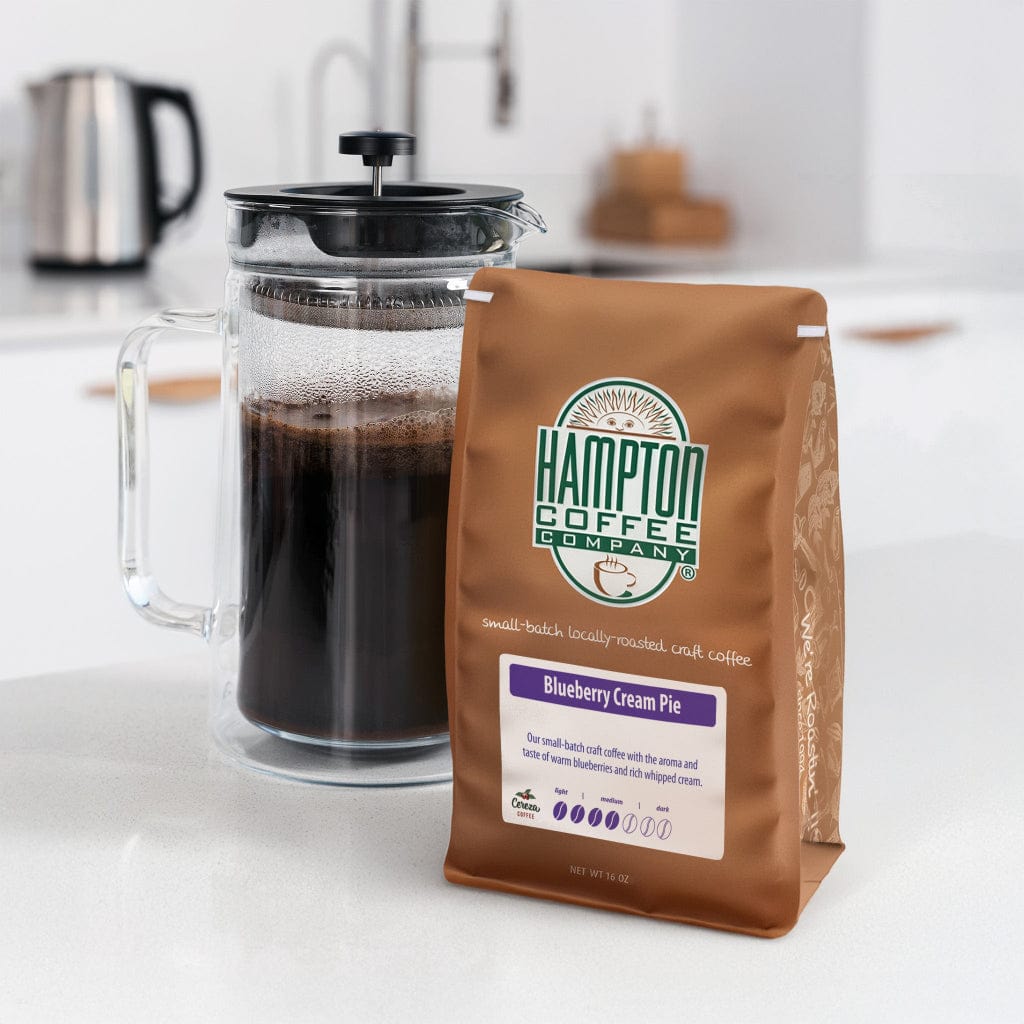 Our small-batch locally-roasted craft coffee with the sweet taste and aroma of freshly-baked Blueberry Cream Pie. A delicious treat for any time of the day.